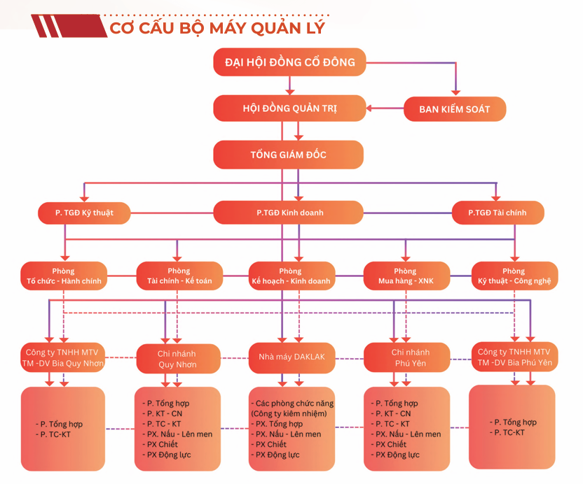 - Sở hữu 2 công ty thương mại: Công ty TNHH 1 TV Bia Quy Nhơn và công ty TNHH TM Bia Phú Yên là hệ thống đảm nhiệm phân phối bia, rượu, sữa và nước giải khát