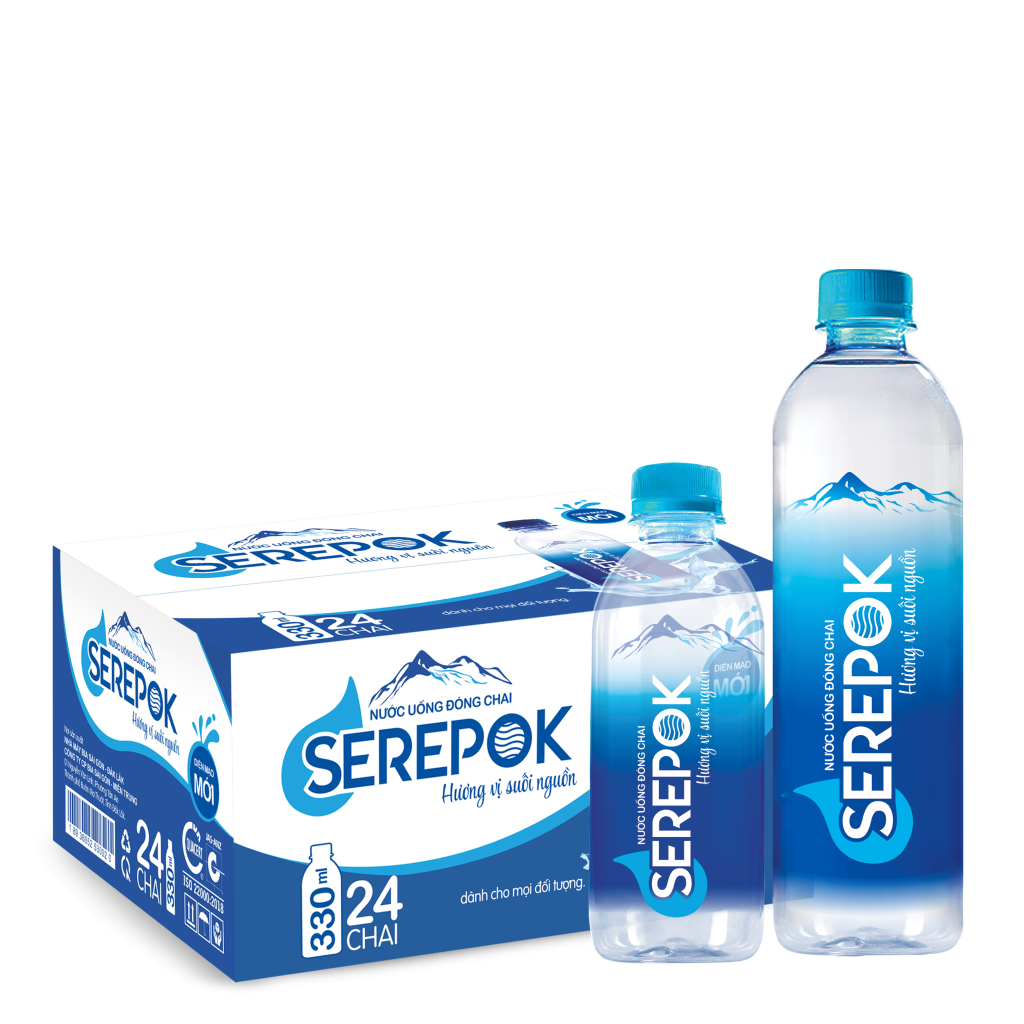 Nước uống đóng chai SEREPOK: Hương vị suối nguồn là sản phẩm của Nhà máy Bia Sài Gòn – Miền Trung, được sản xuất từ nguồn nước nấu bia, đảm bảo độ tinh khiết, tươi mát, chất lượng tuyệt hảo nhờ được xử lý qua hệ thống thẩm thấu ngược và Ozone, thanh trùng bằng tia cực tím (UV). Áp dụng hệ thống quản lý chất lượng ISO 9001: 2008 và được kiểm soát chặt chẽ an toàn thực phẩm bằng hệ thống quản lý ISO 22000: 2005.